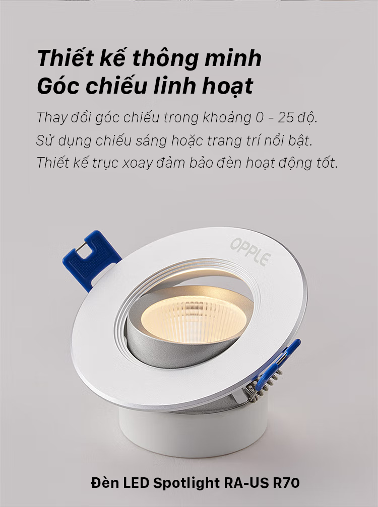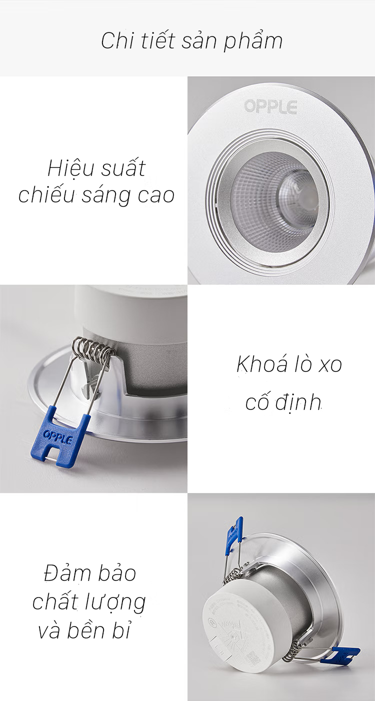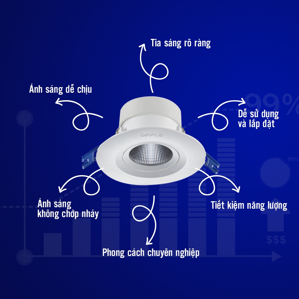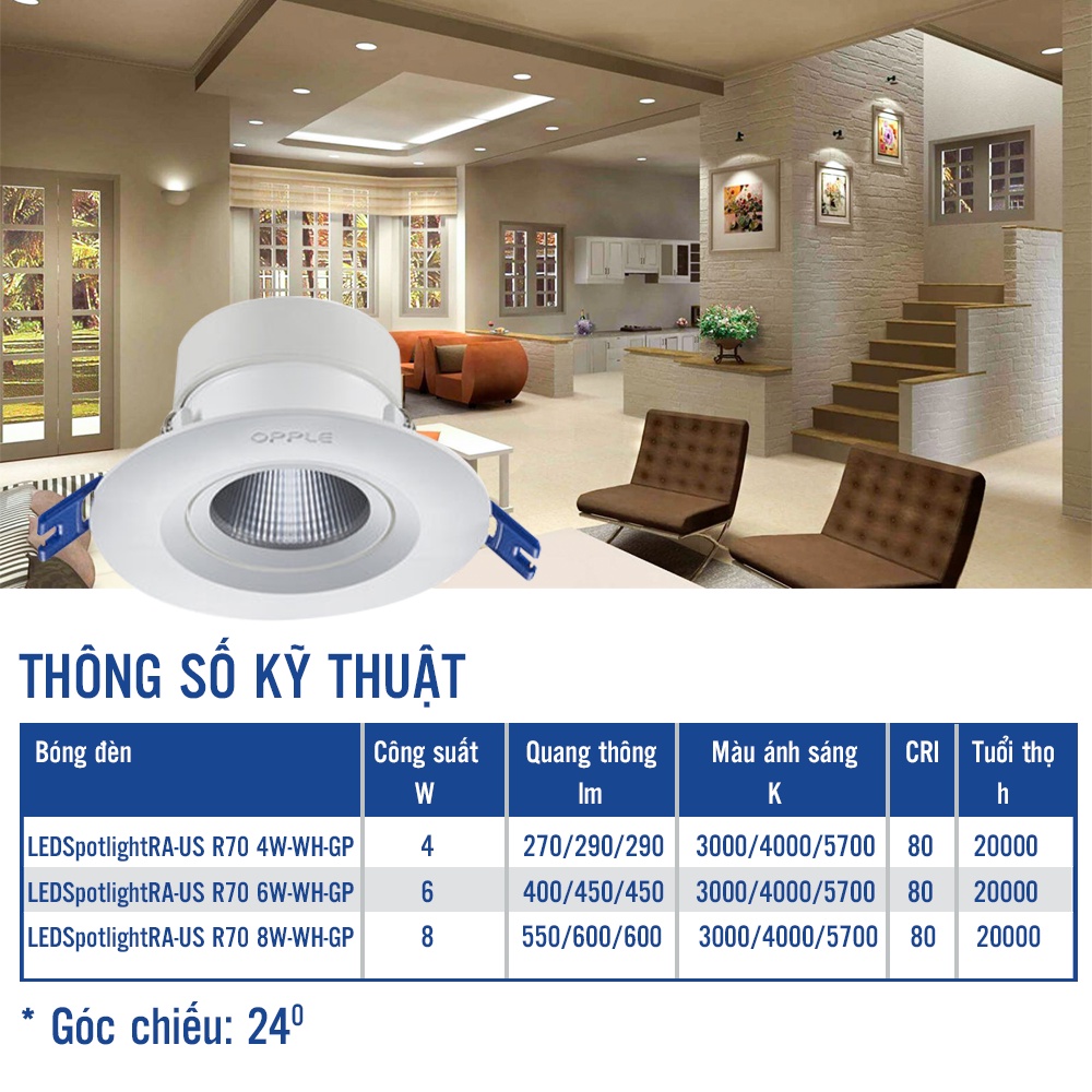- Bộ Đèn OPPLE LED Spotlight US với thiết kế tấm phản xạ lăng kính vi mô quang học mới với chip COD mang đến tia sáng rõ ràng, không có bóng mờ, phù hợp với thiết kế ánh sáng theo phong cách nhấn mạng chuyên nghiệp.