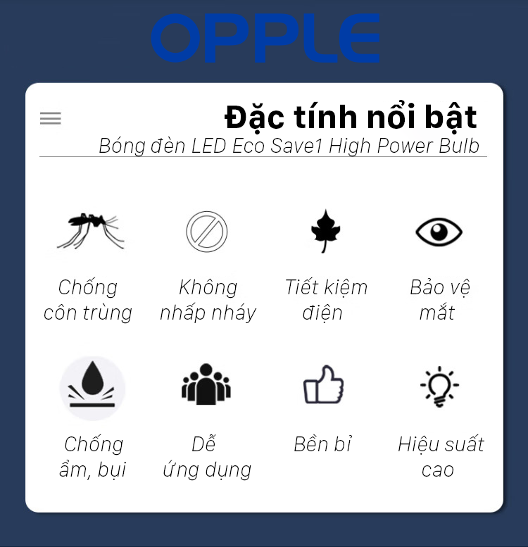 Nhóm sản phẩm bóng đèn LED Bulb E27 của OPPLE sở hữu các ưu điểm: