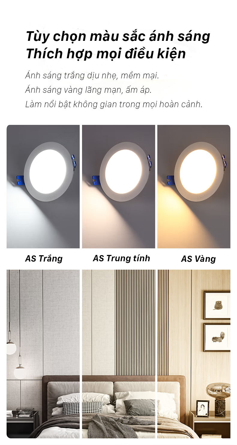- Nhiệt độ màu: 3000K/4000K/5700K