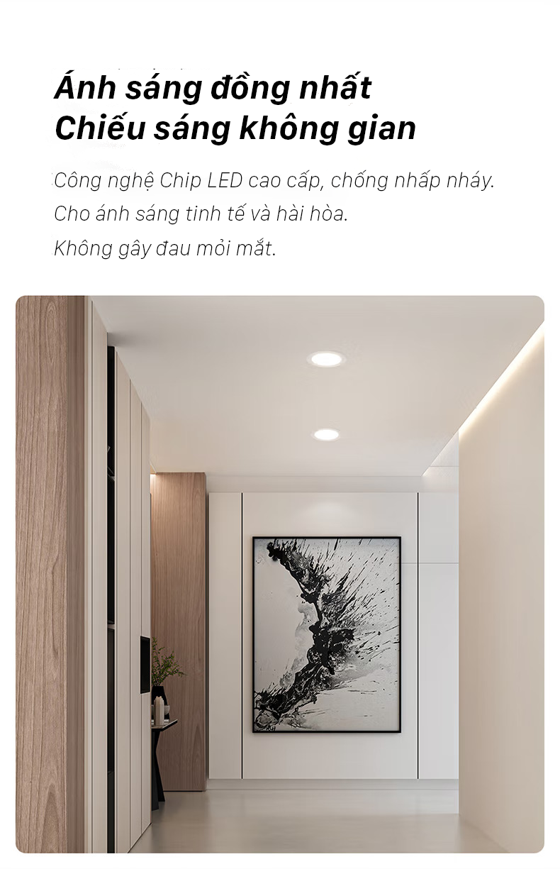 - Ánh sáng không chớp nháy, giảm stress khi làm việc hoặc sinh hoạt