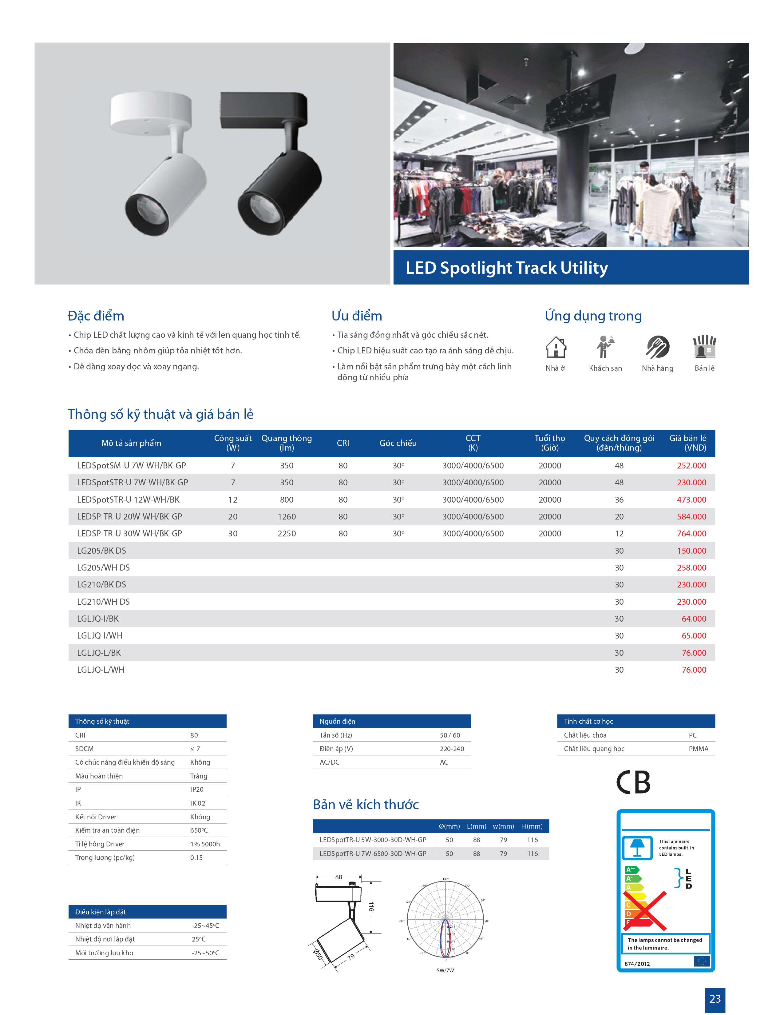 Thông số kỹ thuật của đèn LED OPPLE Spotlight Track Utility TR-UII 20W-WH